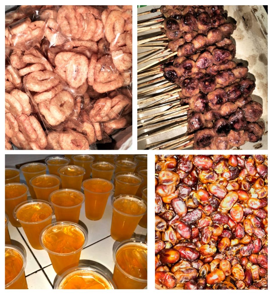 Santri putra: Es Sirup, kurma, corobikang, dan Gorengan